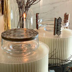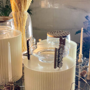 مع الستاندات الجاهزة، حان الوقت لتقديم نجوم العرض – أطباق التقديم من مجموعة الياسمين هذه القطع الرائعة لا تخدم فقط أطباقكم المفضلة ولكنها تضيف لمسة من الترف إلى كامل الإعداد. لتكملتها، وضعنا قطعة زجاجية مع غطاء الثعبان مما يجعل تجربة تناول الطعام الخاصة بكم عملية وأنيقة.