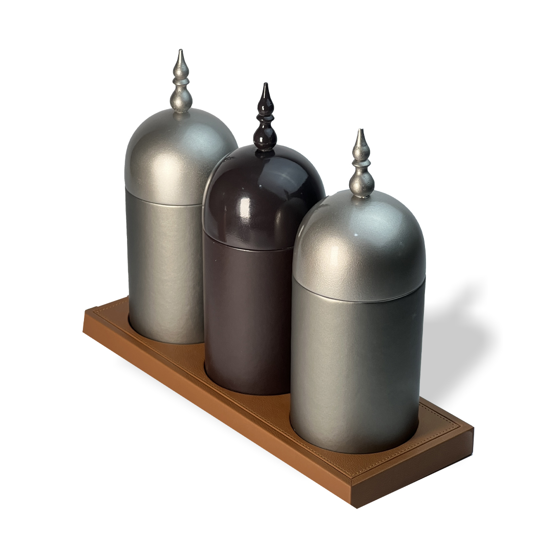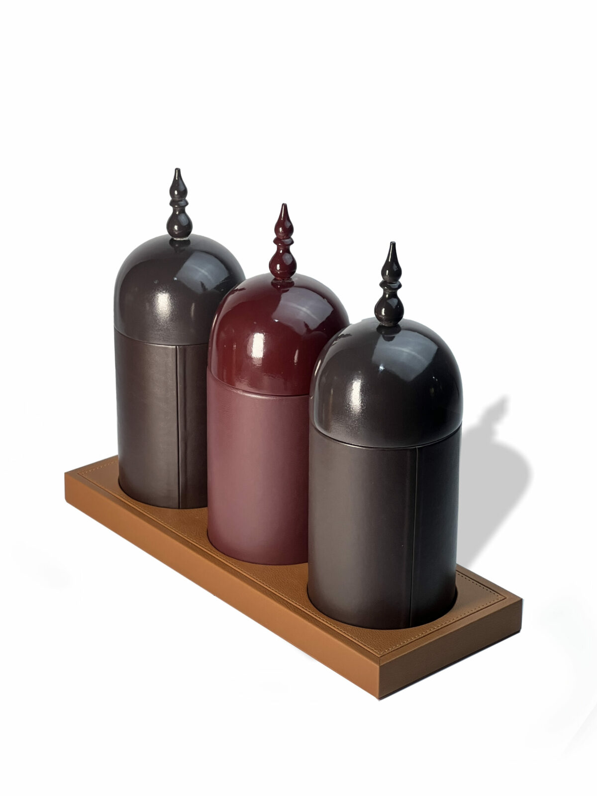 صينية من الجلد لون بني من مجموعة القرمز-طقم من ثلاث قطع